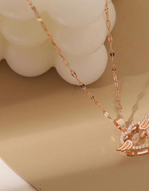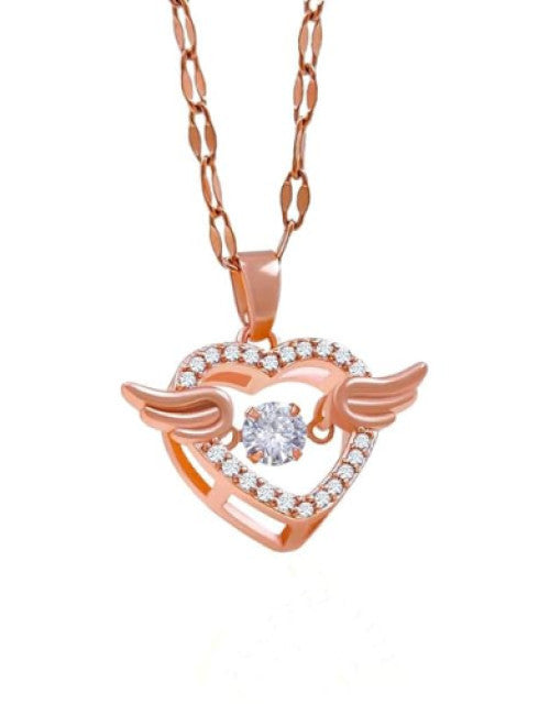 Chain Pendant For Women Stainless Steel Flying Feather Heart Cubic Zirconia Rose Gold Pedant Necklace For Women Girls